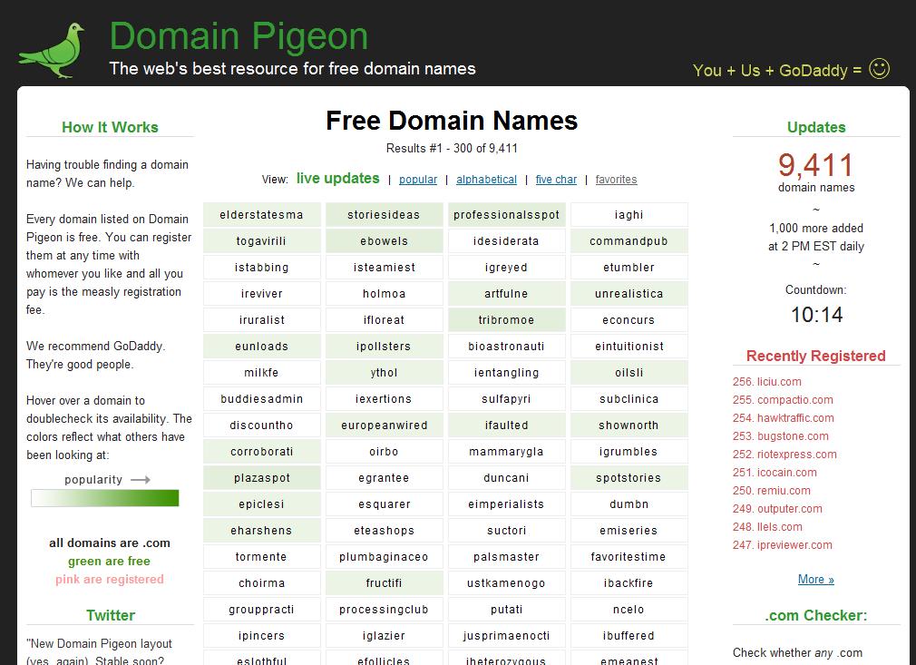 Domains are now added once per day instead of throughout the day like it has been for the last several days. Doing it this way will let me emphasize the daily additions as well as result in a more colorful homepage, since more people will be able to explore the same set of domains throughout the day.