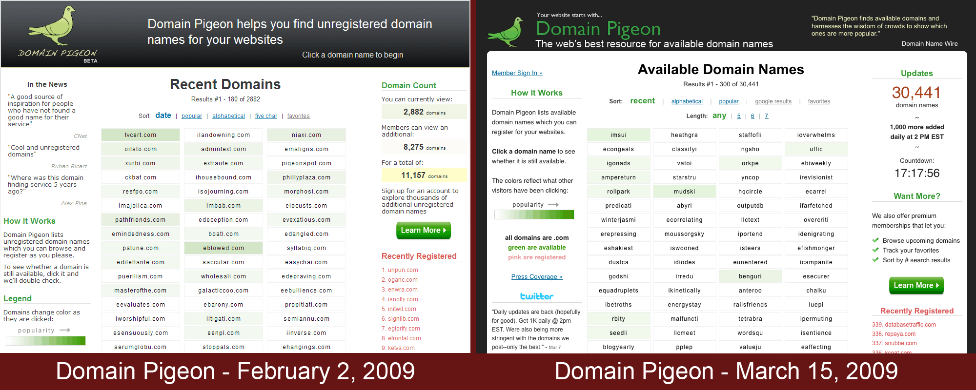 The first was paid accounts, which let account holders access four times as many domains as guests to the site. At the time of the launch this meant that account holders could browse about 12,000 domain names and guests could see about 3,000.