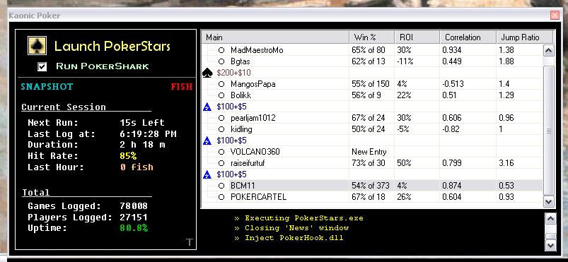 Anyway, after a few months of playing the HUSNG opponent lottery, I decided to see what I could do to improve the situation. I set out to create a program that would record the results of every HUSNG played on PokerStars and then use those results to determine which opponents to play and which to skip.