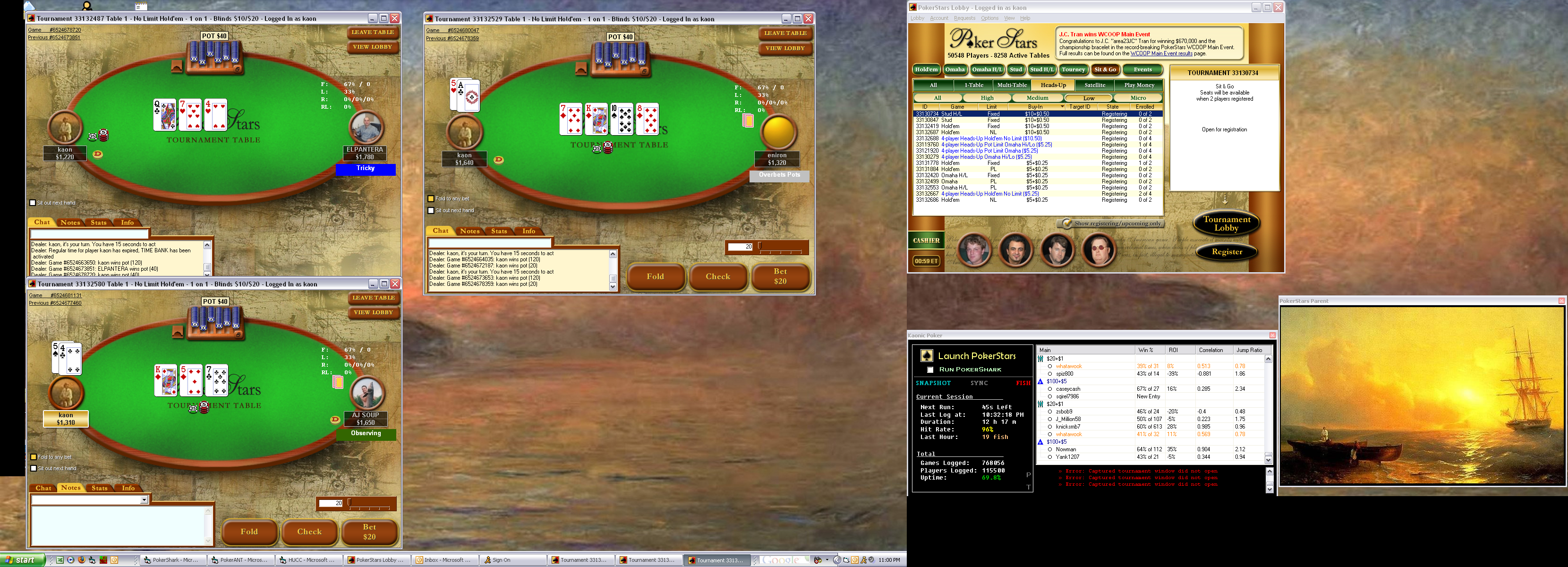 24/7 I had a program running that recorded the winners and losers for every HUSNG and when I was ready to play, I ran a second program which opened up tournament lobbies and waiting for a player to register. As soon as someone registered, the program checked the player’s previous results and determined if he was mediocre enough to play. If he was, the program would automatically register me for that tournament.