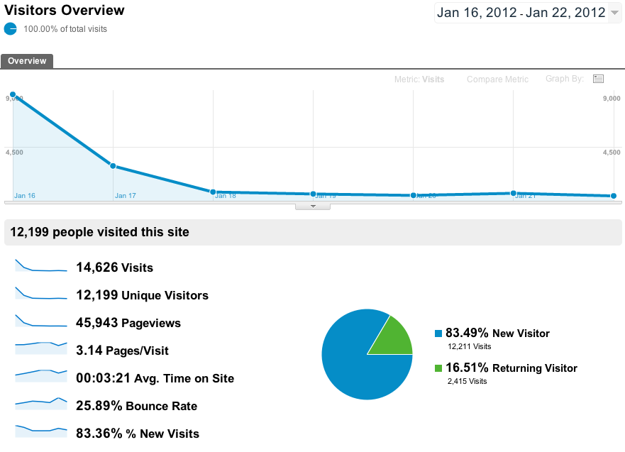 Launch day you get a huge boost of traffic from the early adopters checking out the new-hot-thing and then over the next few weeks it stabilizes at a much lower number. Consider: not everyone who visited that first day needed a domain name that day. What’s important is not how many visitors you get when you launch, it’s how many come back. Lean Domain Search saw 8,350 unique visitors the first day thanks to sitting on the HN frontpage for almost 20 hours. Two weeks later and with no major additional press coverage, that number of daily uniques has stabilized at around 400.
