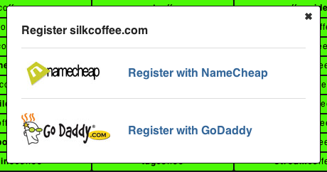The change from version 1 to version 2 was intended to offer more registration options and since all the logos wouldn’t fit well, I went with a list instead. The change from version 2 to version 3 is to improve the call to action button with GoDaddy being the default (like it or not, GoDaddy is still by far the most popular registrar).