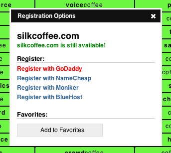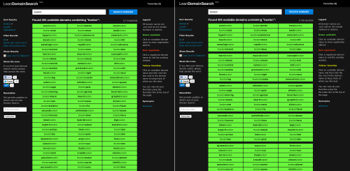 Down the road, international visitors will be able to choose which language they want the site and the results to be in. First up is Hindi. I’ve already started working with a translator on oDesk and expect to have it fully implemented within a month or so. After that, I’m leaning towards Spanish, but if any of your have a strong preference for your native language (and translations can use the English alphabet), please drop me a note: matt@leandomainsearch.com.