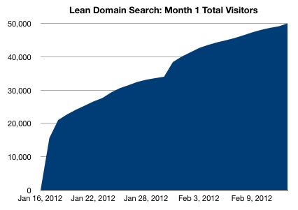I’m happy to announce that yesterday evening, just a few hours shy of its four week anniversary, Lean Domain Search passed 50,000 total searches: