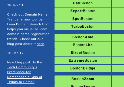 And while I know this is true, I still don’t always do it. For most of January I was working on the new Domain Name Trends tool for Lean Domain Search. From start to finish it took about a month to complete. Each day I woke up I had a choice of what to work on and I always chose to work on developing this new product at the expense of everything else. How much marketing did I do during this time? Take a look at Lean Domain Search’s news section: