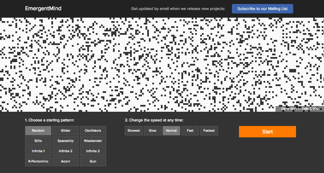 For the second Emergent Mind project, I implemented Conway’s Game of Life in JavaScript: