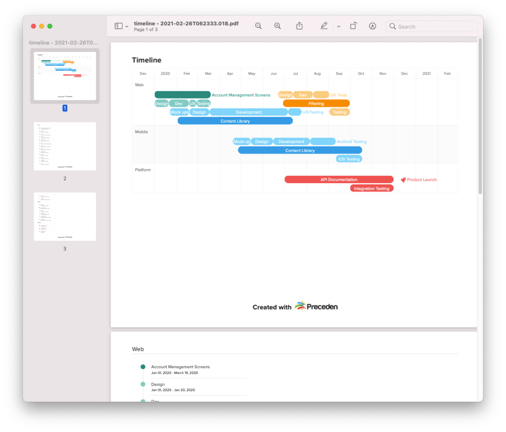 And their content will include a “Created with Preceden” branding section: