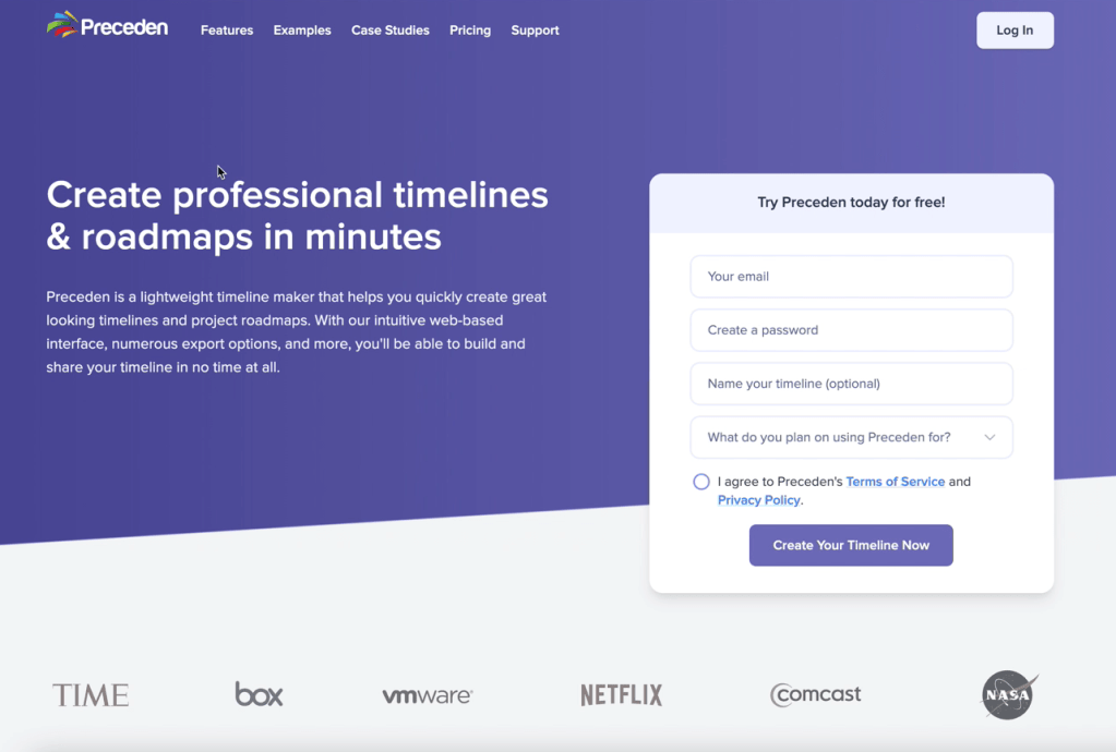 For years now Preceden’s homepage has had a sign up form above the fold: