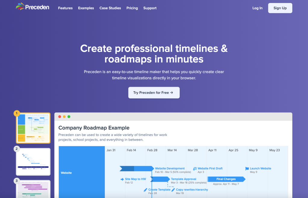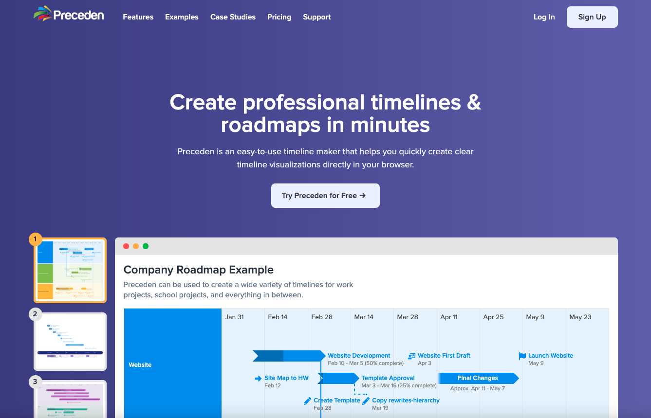 To remedy this, Milan (the front-end designer I work with) and I redesigned the homepage to ensure everyone visiting has a better idea of what Preceden is capable of:
