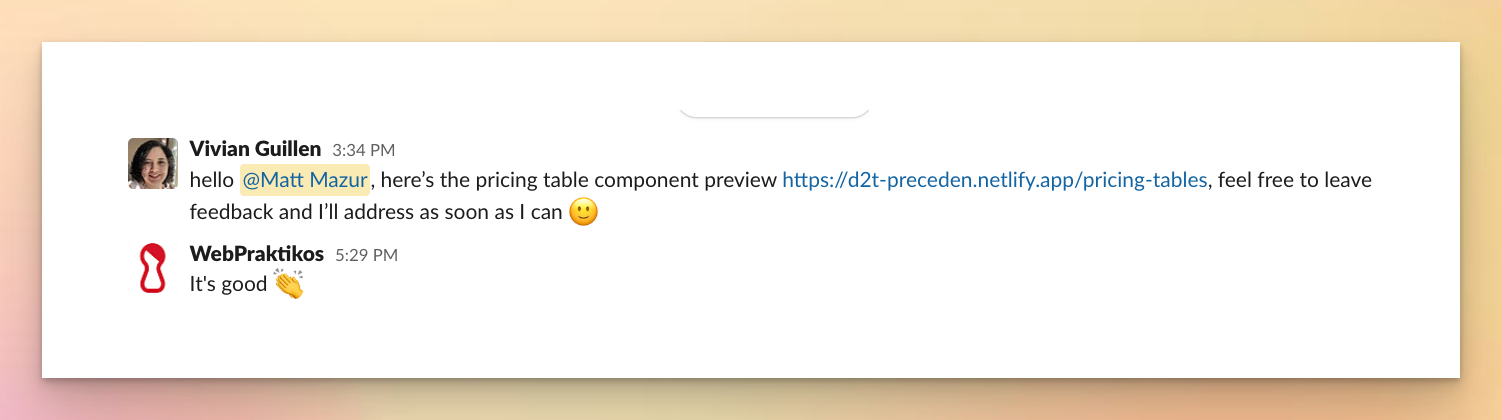 After Milan designed the new pricing page in Figma and we iterated on that mockup in Slack, we hired Design2Tailwind, a small team that specializes in Figma to Tailwind conversion.