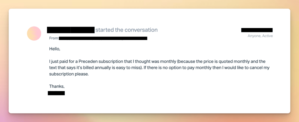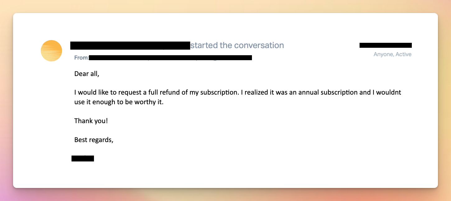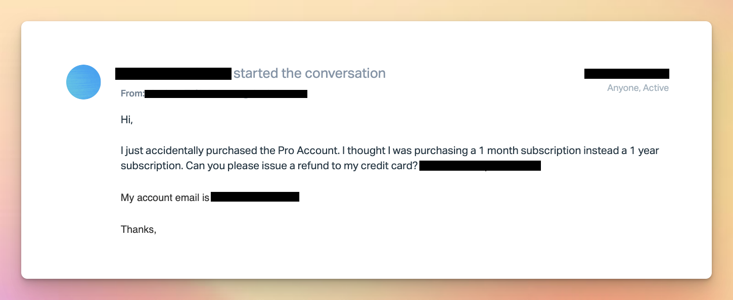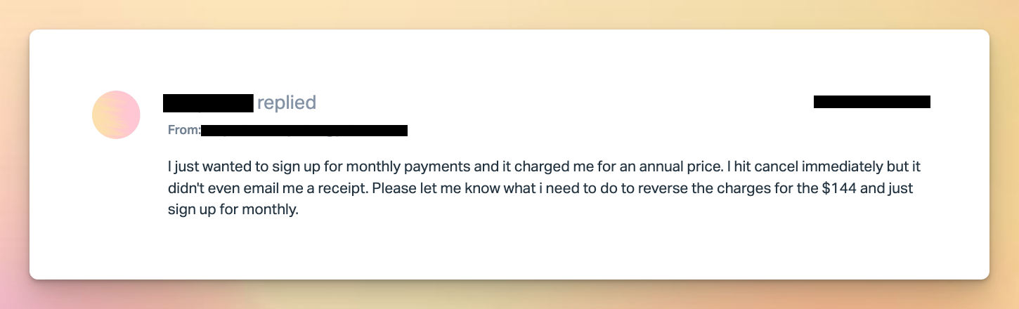 There was a great discussion on Twitter recently that began with Daniel Vassallo calling out a SaaS for not refunding an accidental annual payment he made on their service. He intended to purchase the monthly plan, but due to an unclear UI and poor copy, he unintentionally purchased the annual plan, and the business refused to refund it.