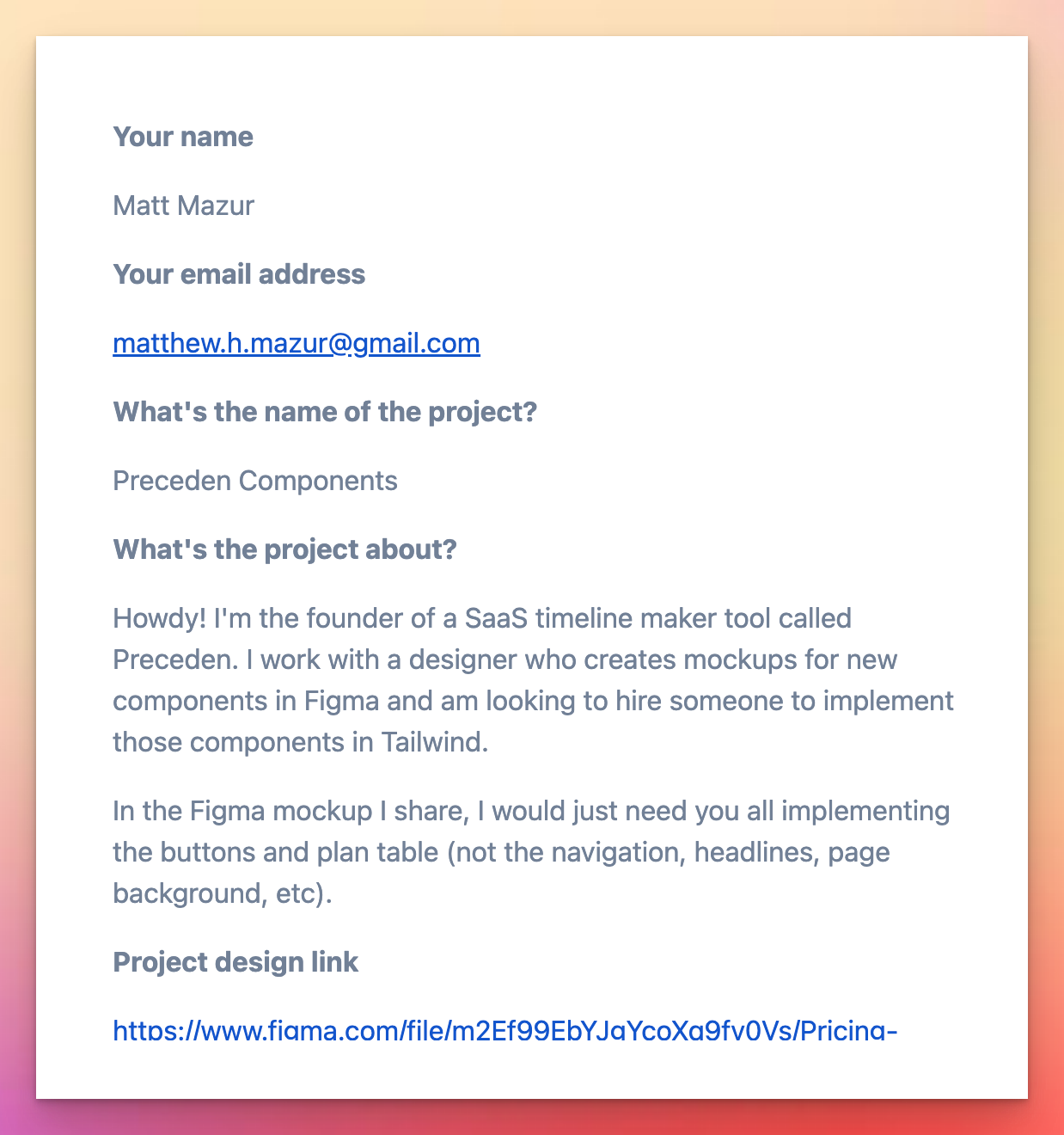 Outsourcing the initial HTML/Tailwind implementation was a great decision though, and one we’ll surely do again for any non-trivial design projects. It let Milan focus on the mockup work which he really enjoys, and me focus on other projects that were better use of my time.