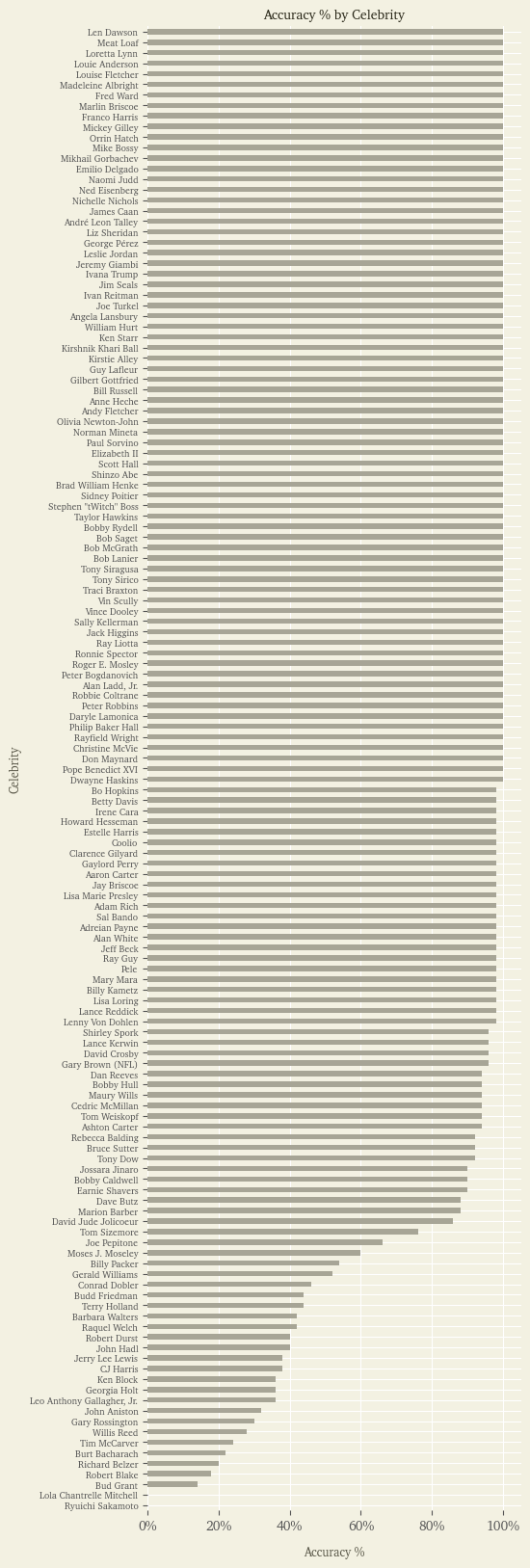 Many of the celebrities it returns the correct date for 100% of the time as we can see from the top half of that chart.
