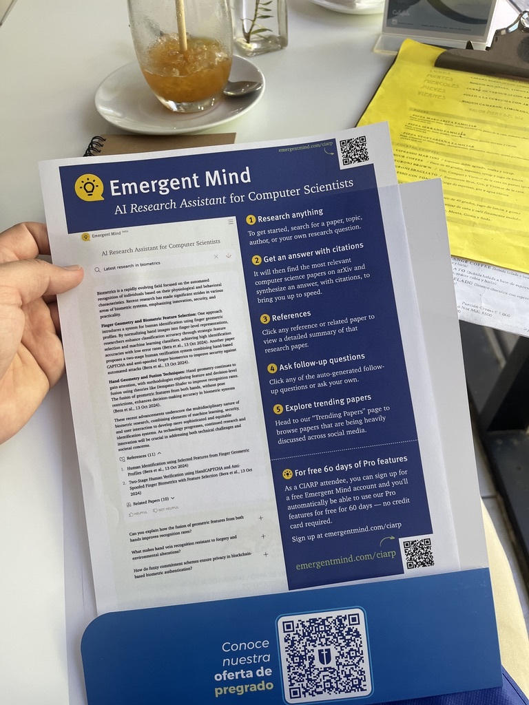 Omar Olivares , an AI engineer who helps me with Emergent Mind, took the initiative to have us sponsor the 27th Iberoamerican Congress on Pattern Recognition in Chile, which got the site in front of a lot of people: