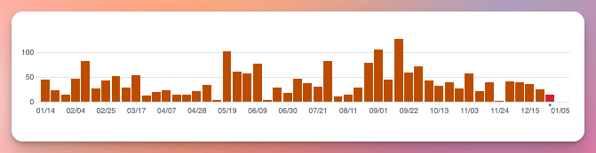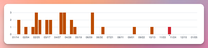 I made 32 commits to Preceden, my timeline maker software, the entire year. Those commits were all small tweaks like switching the AI timeline generator from gpt-3.5-turbo to gpt-4o-mini, fixing responsiveness issues, and other quick adjustments.